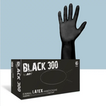 - Diese Latexeinmalhandschuhe haben Überlänge (>300 mm) als Spritzschutz